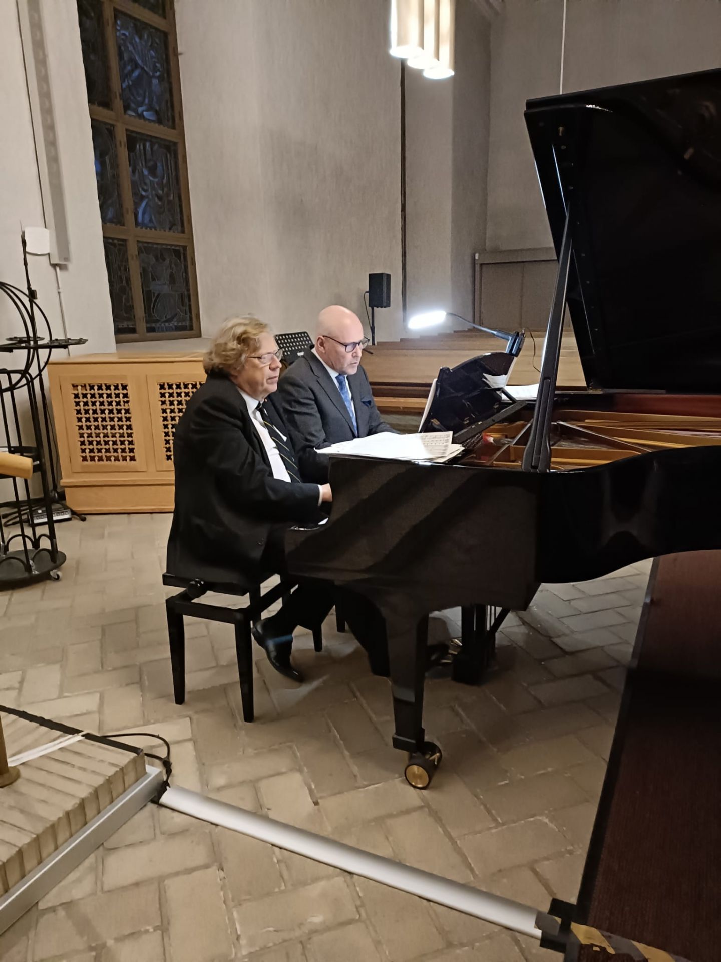 Svenska veckan konsert i Kyrkslätts Kyrka 8.11.2025 med pianisterna Folke Gräsbeck och Henrik Wikström, samt en manskör som står för sånginslagen